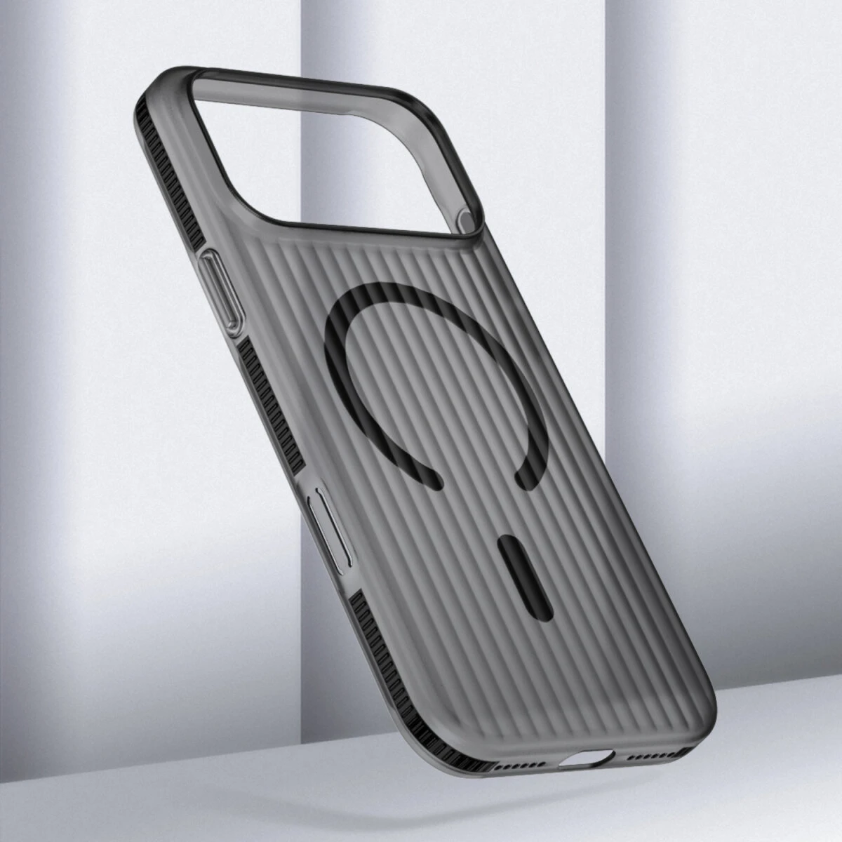 Das 4smarts Aero Riffel-Design Case für Apple iPhone 17 Pro Max kombiniert minimalistisches Design mit hochwertiger Funktionalität – inspiriert vom ikonischen Look edler Aluminium-Reisekoffer.