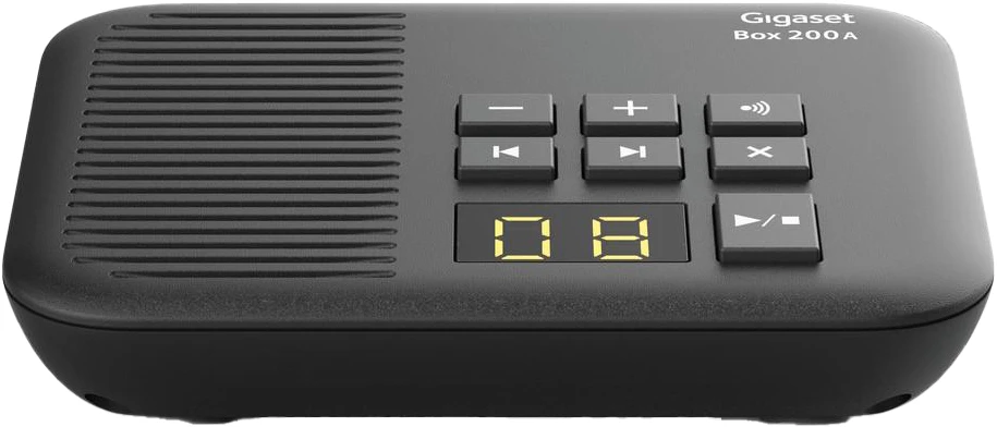 Schnurloses DECT-Telefon-Kombination mit integriertem Anrufbeantworter (20 Min. Aufzeichnung) im Einstiegsbereich, bestehend aus einer schnurgebundenen Basisstation und einem Mobilteil mit Ladeschale, geeignet für den Standardanschluss.