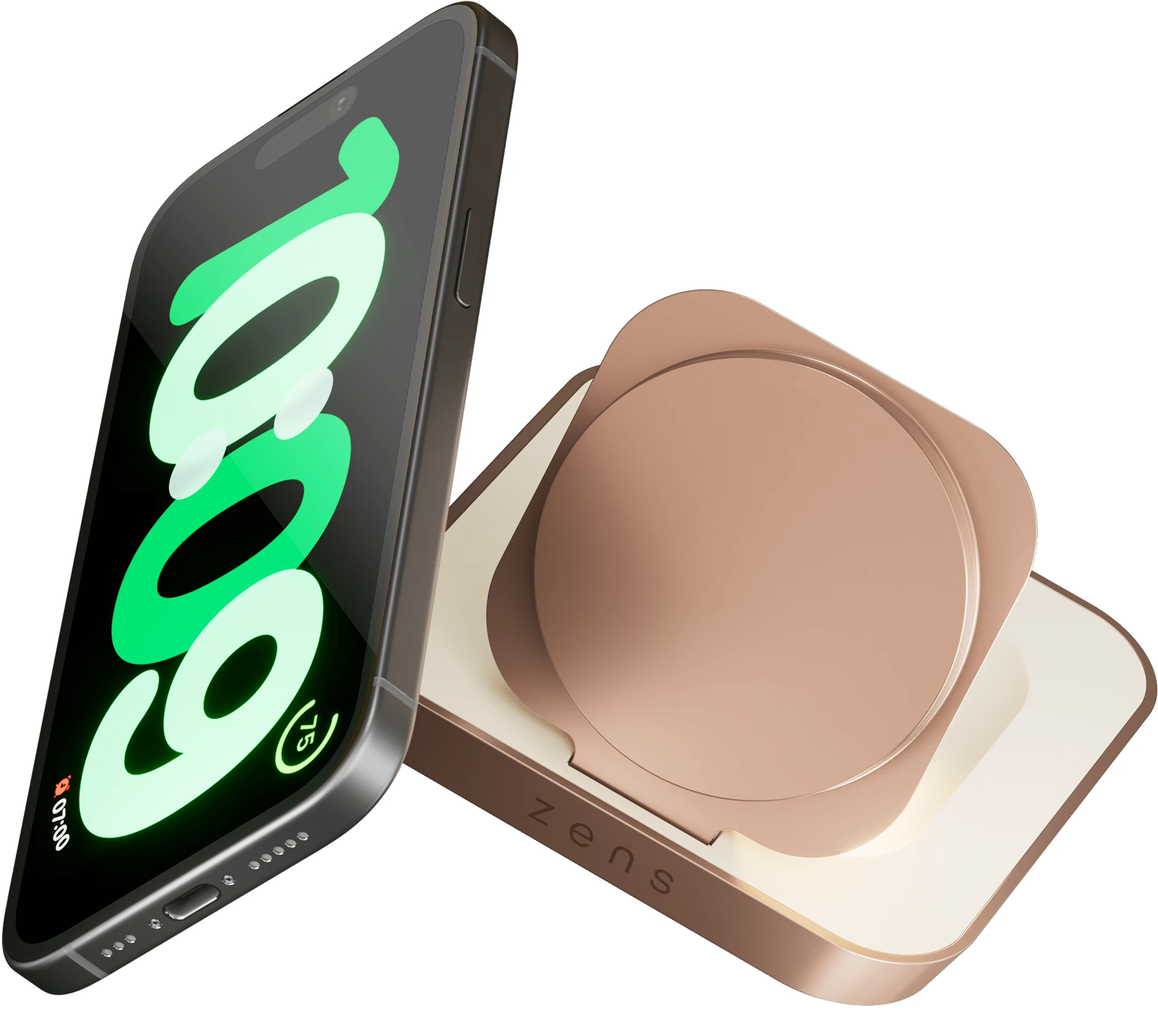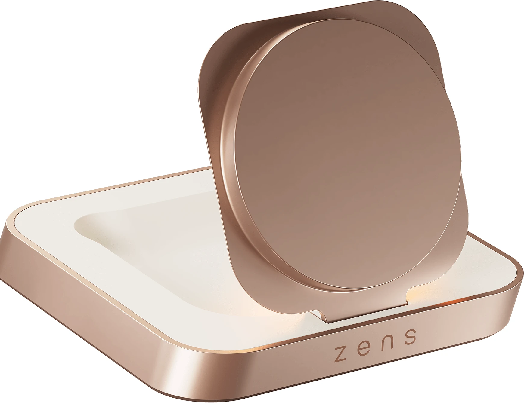 Wachen Sie voll aufgeladen auf mit dem Zens Magnetic Nightstand Charger in limitierter Auflage in elegantem Weiß und Kupfer. Dieses luxuriöse Design passt perfekt in helle Innenräume und ermöglicht müheloses Laden Ihres iPhone 12 und neuer oder Ihrer MagSafe AirPods ohne störende Kabel auf Ihrem Nachttisch. Es ist aus hochwertigem Zink/Legierung gefertigt, bietet 15 W schnelles Laden und unterstützt Apple Fast Charge mit 7,5 W. Sein magnetisches Design ermöglicht horizontales Laden, während Sie im Apple StandBy-Modus das Display an einen Wecker, einen Bilderrahmen, eine Spotify-Wiedergabeliste, einen Kalender oder eine Wettervorhersage anpassen können. Sie können das Display problemlos an Ihren persönlichen Stil anpassen und jeden Tag voll aufgeladen, organisiert und startklar beginnen.